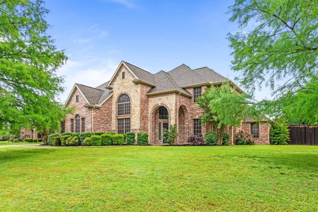 Striking custom home on an expansive .72-acre lot nestled on a quiet cul-de-sac street. This versatile floorplan delivers 5 bedrooms, 4 living areas, and a dedicated study — room for every lifestyle need. Inside, a dramatic two-story entry sets the tone, complemented by gleaming hardwood floors, dual staircases, and refined archways and moldings throughout. The kitchen is built for gathering, with granite countertops, a center island, gas cooktop, stainless steel appliances, and a breakfast bar. A warm, inviting family room anchors the home with a brick fireplace and custom built-ins. Step through the dining room to a charming side patio - a quiet retreat all its own. The owner's suite features a bay window sitting area, separate vanities, a garden tub, frameless glass shower, and a spacious walk-in closet. A secondary bedroom and full bath on the main level offer the perfect guest suite or nursery. Upstairs, three additional bedrooms join a game room and media room for ultimate flexibility. Out back, a true backyard oasis awaits - sparkling pool and spa, covered patio, extended decking, and a sprawling grass play area ideal for entertaining and everyday enjoyment. Two storage sheds add practical convenience. Both HVAC condenser units have been replaced, and all bathroom and kitchen faucets are new. Excellent Plano ISD schools, with shopping and dining just minutes away.