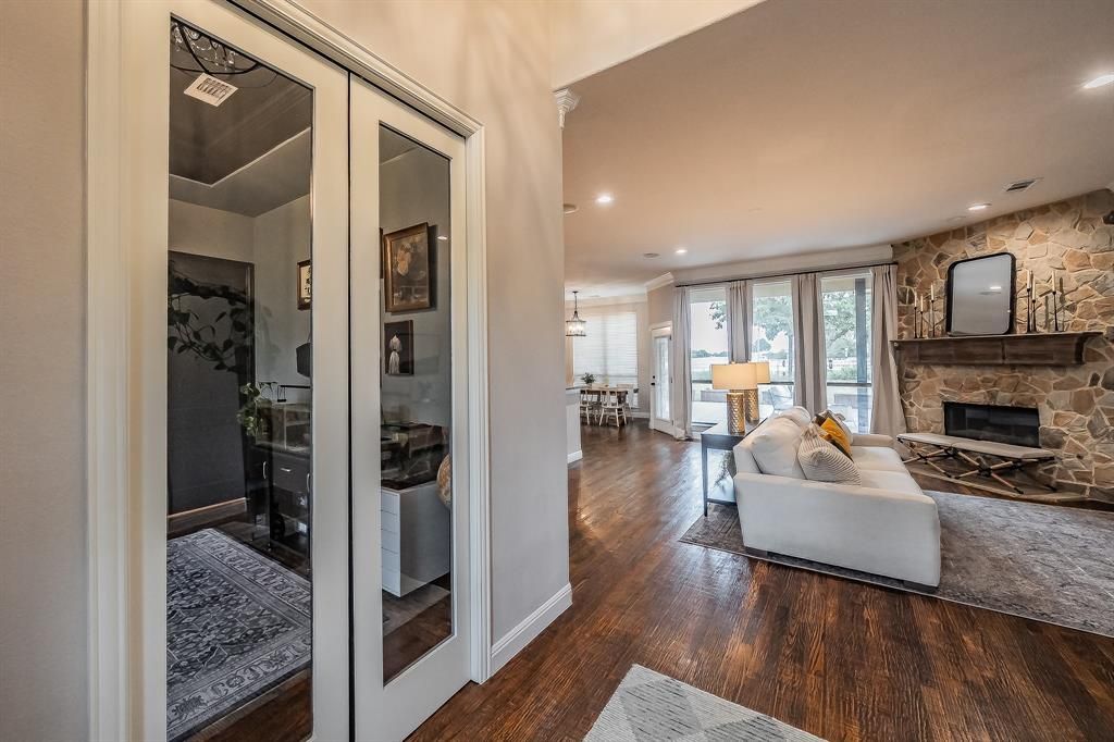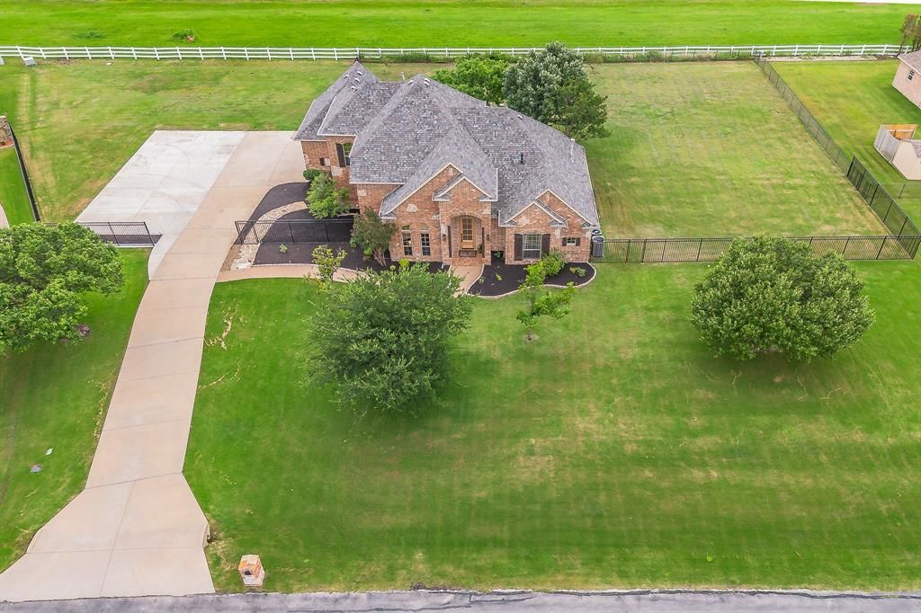 Welcome home to this beautifully UPDATED custom-built residence in the gated community of Van Zandt Farms. Situated on a full acre, you’ll enjoy peaceful country living with NO CITY TAXES, all while being just minutes from the conveniences of Alliance Town Center. Step inside to find luxurious hardwood floors, crown molding, detailed trim work, and fresh neutral paint throughout. This spacious floor plan offers 4 bedrooms, 3 full baths, 2 living areas, and a dedicated media room—perfect for both everyday living and entertaining. The first floor also features a private guest bedroom and full bath, ideal for visitors.The chef’s kitchen is designed to impress with Viking appliances, RO filter, a 5 burner gas cooktop, double oven, granite countertops, dual sinks, and abundant storage space including a large walk in pantry. The primary suite is a true retreat, showcasing a see-through gas fireplace and a COMPLETELY REMODELED spa-like bathroom featuring a frameless glass tiled shower, freestanding soaking tub, new vanities with under-mount sinks, and elegant quartz countertops. Recent upgrades throughout the home include new carpet in select areas, a new heating and cooling system downstairs, wrought iron fencing, and additional concrete to widen the driveway and extend the back patio—enhancing both functionality and outdoor living. Enjoy time with neighbors at the community pool or take a stroll around the scenic ponds, park, and playground. All three highly rated Northwest ISD schools are conveniently located just down the street. Additional updates include: 2022 tankless water heater, lighting, and ceiling fans. Roof replaced in 2018. You won't want to miss this gem.